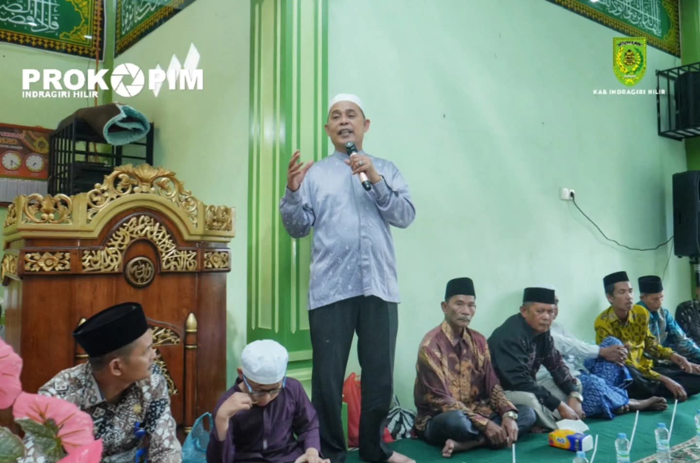 Kuala Keritang - Bupati H.Herman, SE, MT didampingi Istri Hj.Katerina Susanti, SKM, M.Kes menghadiri maulid di Musholla As,ad Parit Seri Beringin Jaya Desa Kuala Keritang Kecamatan Keritang, Kamis (11/9/2025) siang.