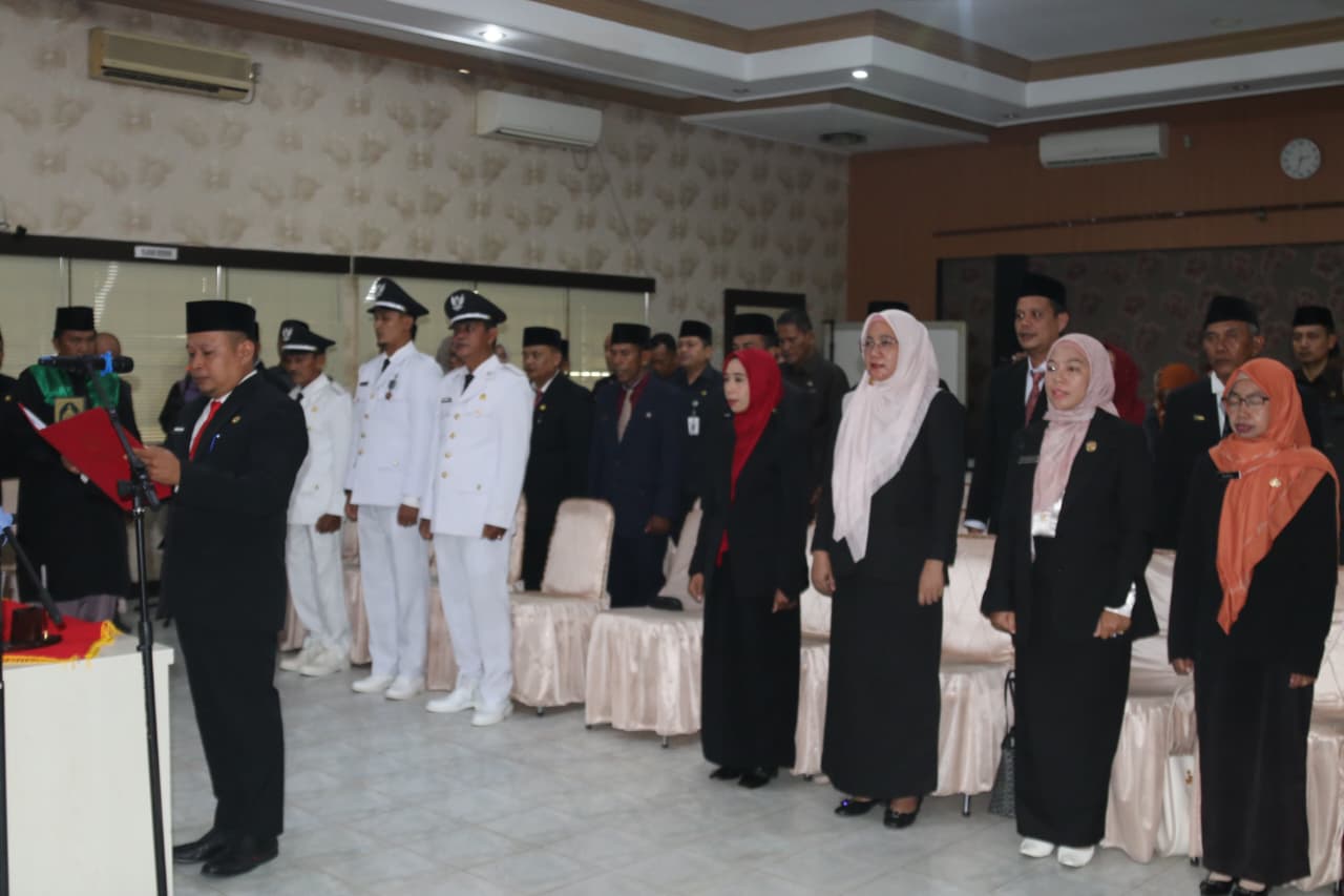 Tembilahan – Bupati Indragiri Hilir (Inhil) H. Herman yang diwakili oleh Sekretaris Daerah Kabupaten Inhil, H. Tantawi Jauhari, memimpin prosesi pelantikan dan pengambilan sumpah jabatan sebanyak 19 Pejabat Administrator dan Pejabat Pengawas di lingkungan Pemerintah Kabupaten Indragiri Hilir. Kegiatan tersebut berlangsung di Aula Kantor Bappeda Inhil, Jumat (24 Oktober 2025).