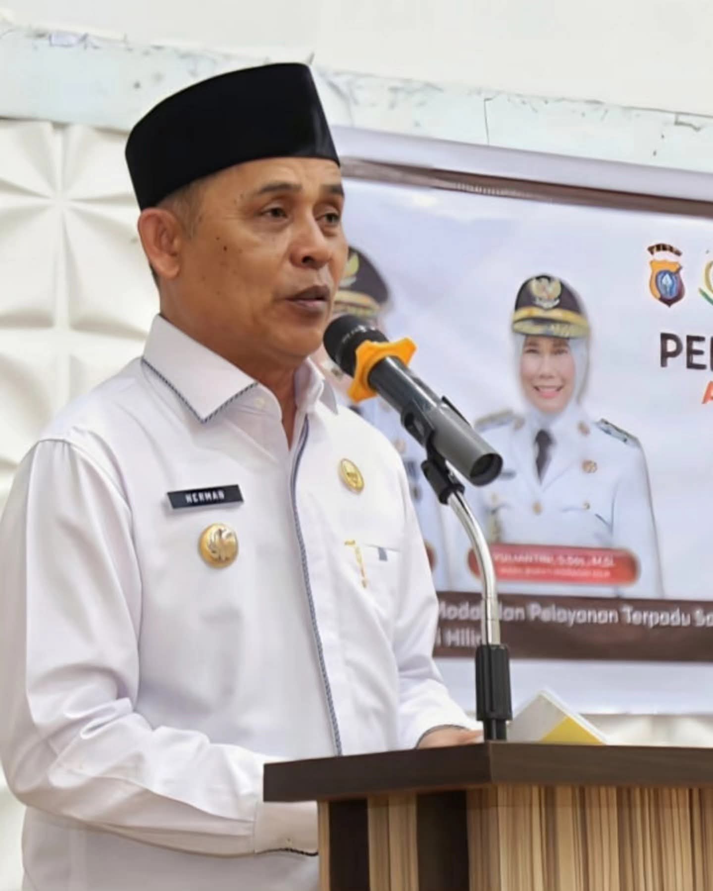 Tembilahan, - Bupati Indragiri Hilir, H. Herman, SE, MT bersama unsur Forkompimda menyaksikan penandatanganan perjanjian kerja sama antara Pemerintah Kabupaten Indragiri Hilir dengan berbagai instansi pemerintah, lembaga dan BUMN/BUMD untuk pengisian gerai Mal Pelayanan Publik (MPP), Tembilahan, Rabu, (08/10/2025).