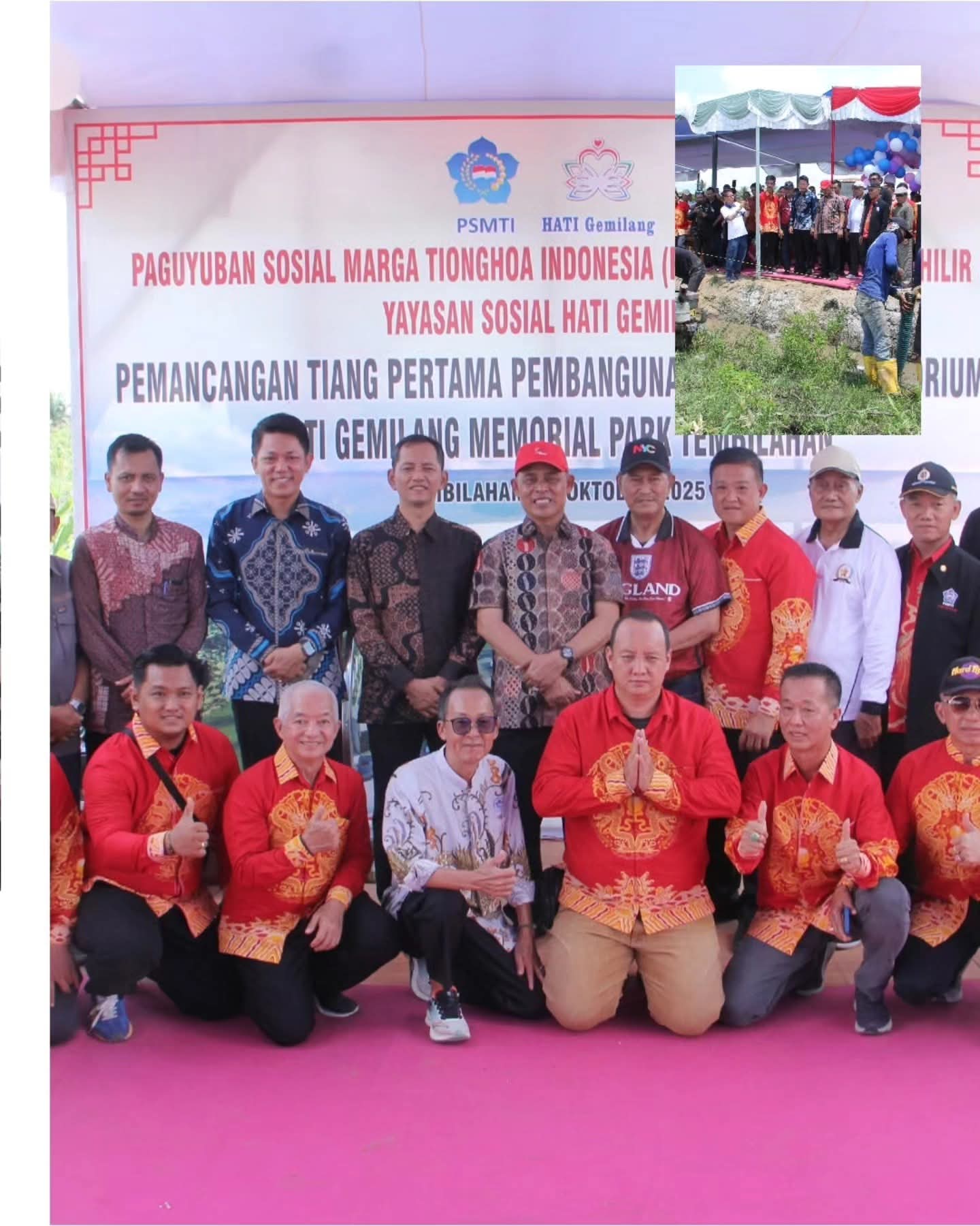 Pulau Palas – Bupati Indragiri Hilir (Inhil) H. Herman, SE, MT menghadiri sekaligus meresmikan pemancangan tiang pertama pembangunan Gedung Krematorium Hati Gemilang Memorial Park Tembilahan yang berlokasi di Desa Pulau Palas, Kecamatan Tembilahan Hulu, Sabtu (18/10/2025).