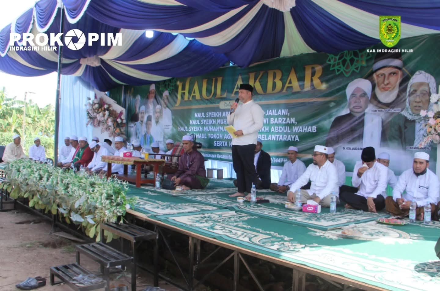 Belantaraya — Bupati Indragiri Hilir (Inhil) H. Herman, SE., MT. yang diwakili Staf Ahli Bidang Kemasyarakatan dan SDM, H. Muamar Gaddafi, menghadiri acara Haul Akbar di halaman Pondok Pesantren Insanul Amin, Desa Belantaraya, Kecamatan Gaung, Minggu (26/10/2025).