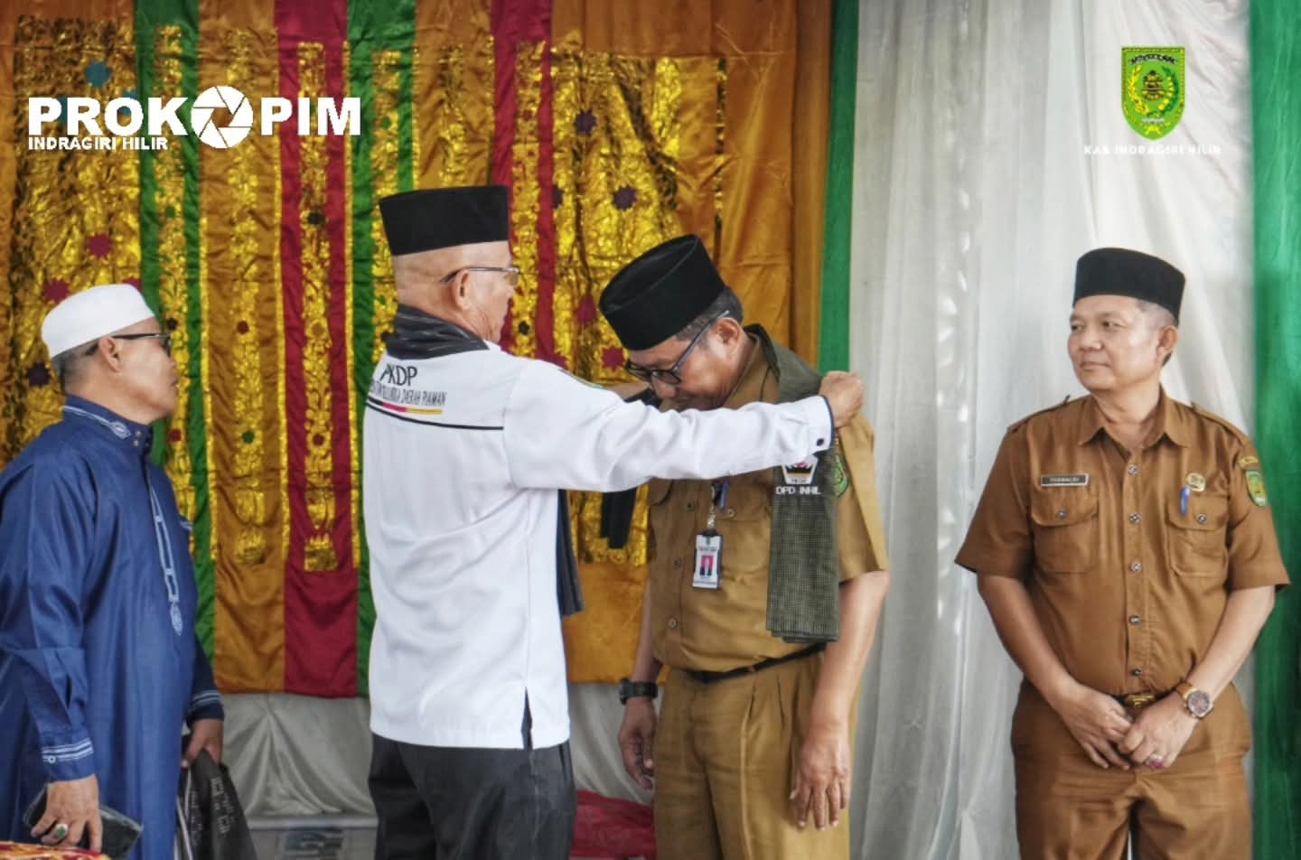 Sebelum sambutan, dilakukan pemasangan kain selempang ciri bertuliskan DPD PKDP kepada Asisten III Setda Inhil oleh Ketua PKDP Inhil sebagai simbol kehormatan dan persaudaraan.