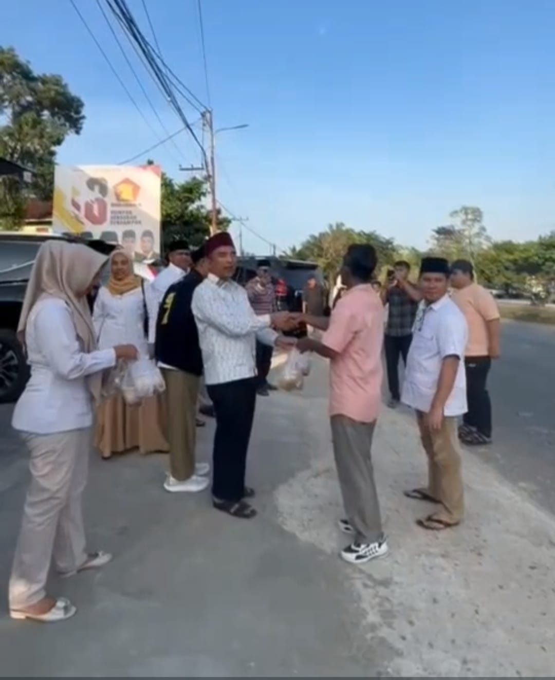Ketua DPRD Kabupaten Kampar dan Anggota DPRD Zumrotun Bagikan Takjil di Depan Kantor DPC Gerindra