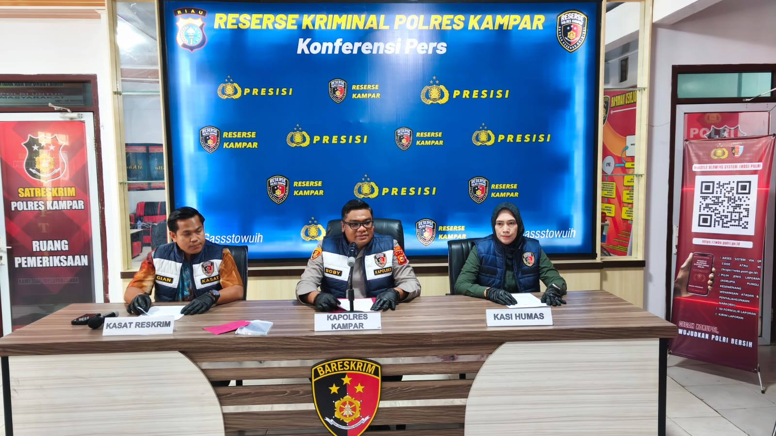 Keberhasilan pengungkapan kasus ini disampaikan dalam konferensi pers yang digelar di Mapolres Kampar, dihadiri oleh Kapolres Kampar AKBP Boby Putra Ramadhan, Kasat Reskrim AKP Gian Wiatma Jonimandala, dan Kasi Humas IPTU Rekmusnita.
