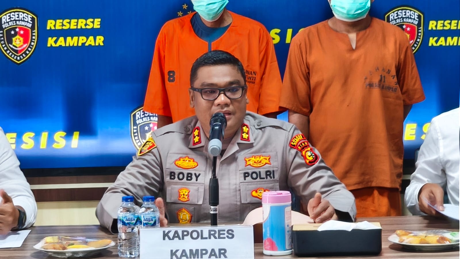 Konferensi pers ini dipimpin oleh Kapolres Kampar AKBP Boby Putra Ramadhan S, didampingi Kasat Reskrim AKP Gian Wiatma Jonimandala dan Kanit PPA Aipda Syamsul Bahri.