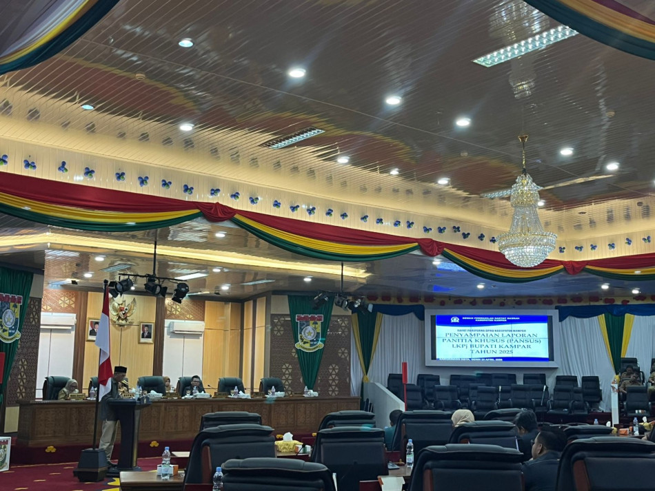 Rapat yang dipimpin pimpinan DPRD Kampar, Ahmad Taridi, tersebut menjadi bagian dari fungsi pengawasan legislatif terhadap jalannya pemerintahan daerah. Dalam sidang ini, Panitia Khusus (Pansus) LKPj menyampaikan hasil evaluasi menyeluruh terhadap kinerja Pemerintah Kabupaten Kampar selama tahun 2025.