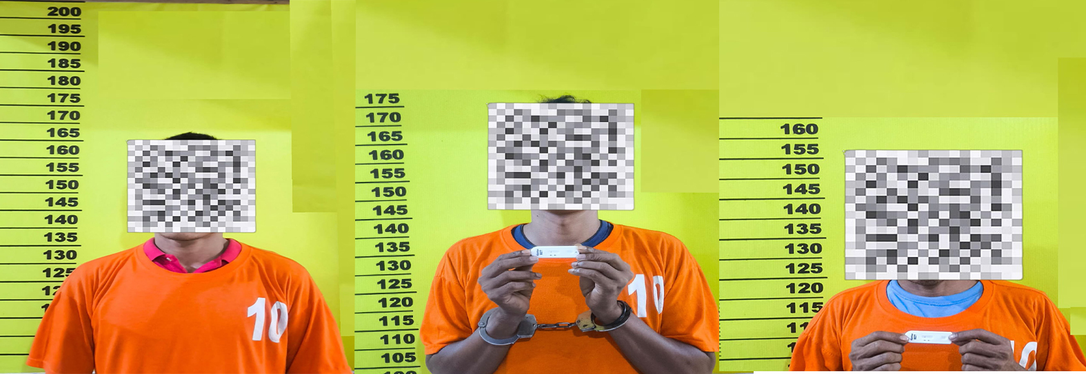 Dari lokasi kejadian, polisi menyita satu unit alat hisap sabu (bong), satu kaca pirek diduga berisi sabu, satu mancis berjarum timah, serta tiga unit handphone berbagai merek. Total berat kotor sabu yang diamankan mencapai 1,46 gram. Hasil tes urine terhadap ketiganya pun menunjukkan positif mengandung Metamphetamine.