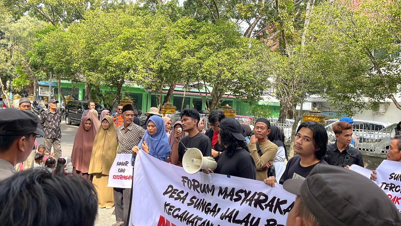 Warga dan Pemuda Sungai Jalau Demo di DLHK Riau, Tuntut Evaluasi Aktivitas Galian C PT KKU